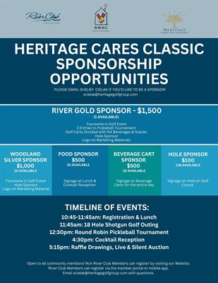 River Club of Mequon is inviting you to a golf scramble and pickleball tournament to raise proceeds for the Heritage Cares Foundation and the Ronald McDonald House of Eastern Wisconsin.