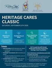100% of the proceeds from the tournament will be donated to The Ronald McDonald House and Heritage Cares Foundation. Please join us, and help make a difference for our community!