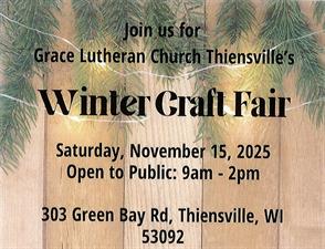 Join us at Grace Lutheran Church in Thiensville for our Winter Craft Fair on Saturday, November 15 from 9am-2pm. Shop handmade crafts from a variety of local vendors, food, and drinks, raffle, and a wine pull.